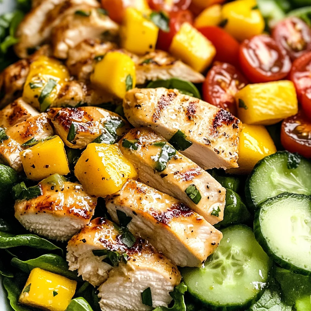 Enjoy a refreshing Chicken Mango Salad packed with tender chicken and vibrant veggies. Perfect for dinner – try this quick recipe today!